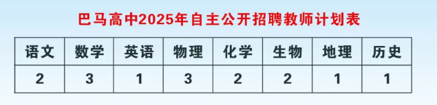 巴马高中2025年自主公开招聘教师计划表(详见附件)